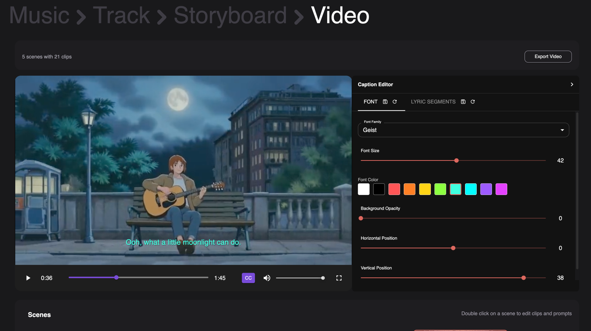 Music videos aren't any different. So we built a caption editor directly into Autopilot. It works with our lyric detection algorithm (which we've also improved) to make the whole process pretty straightforward. The editor itself is clean and simple – nothing fancy, just a tool that does what you need it to do.